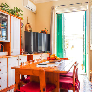 The property opens onto a large entrance hall leading to a bright living room, enhanced by wide openings that overlook a terrace. The main living areas enjoy excellent exposure and open onto both a balcony and a spacious terrace, offering unobstructed views over the urban landscape, surrounding hills, the sea, and the Sicilian sky, which delights with spectacular sunsets.